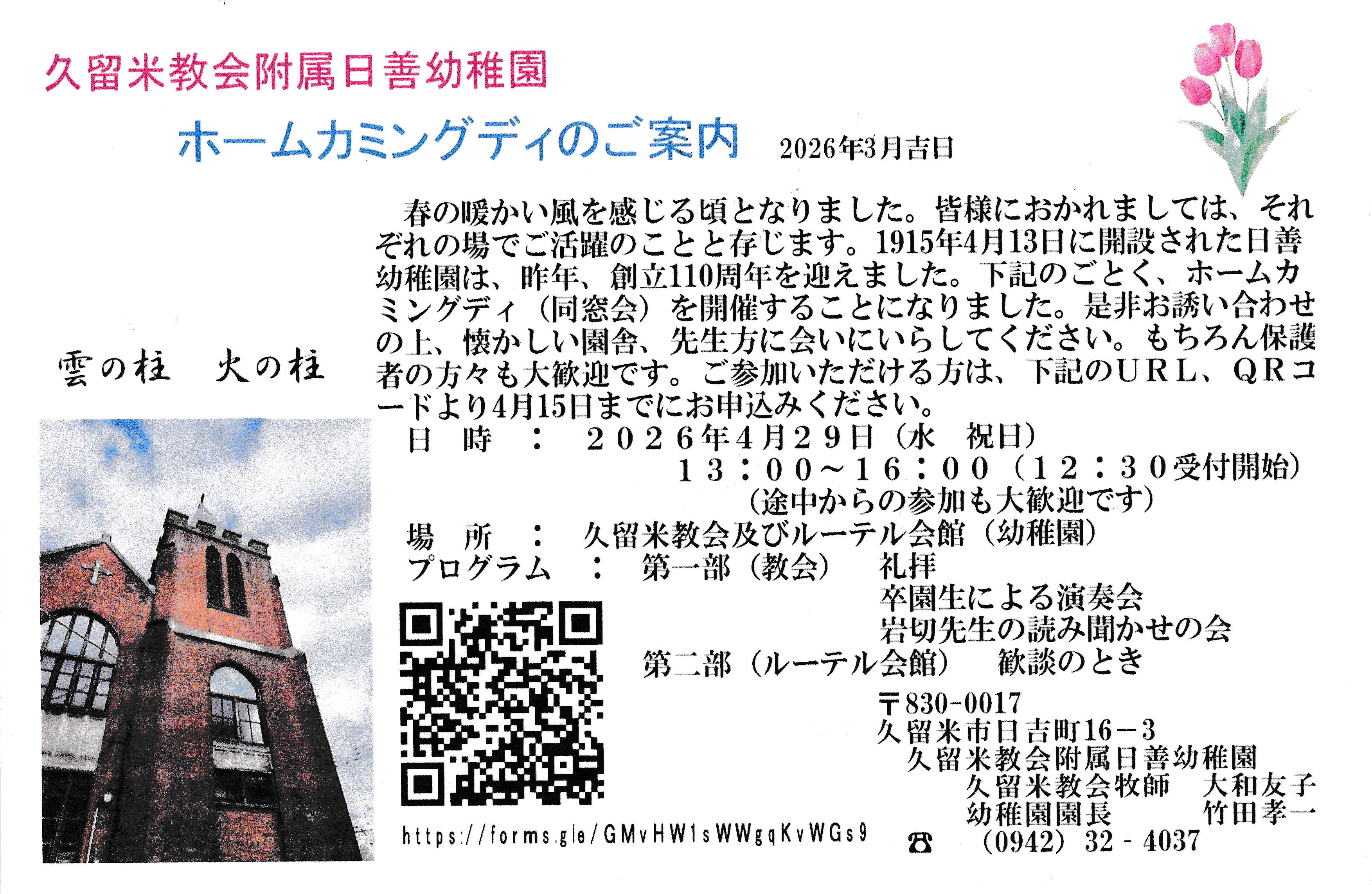 以来100年以上にわたって久留米の地に福音を宣べ伝えています。